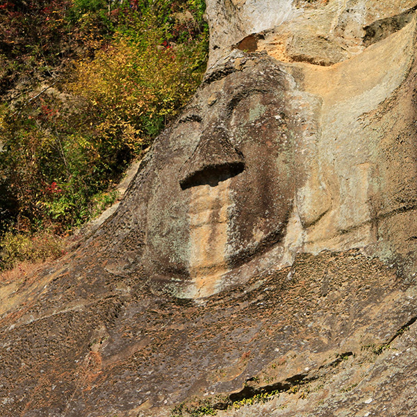この大佛は高さ五十五尺(約十六・五m)、顔の長さ十二尺(約三・六m)肩幅三十三尺(約九・九m)、日本全國で五指に入る大像で、「北限の磨崖佛」として名高い。